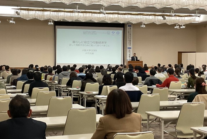 講師に大竹文雄氏をお招きし、「暮らしに役立つ行動経済学〜正しく判断するために知っておくべきこと〜」と題し、行動経済学の考え方の説明や、暮らしにおけるよりよい選択を後押しするためのアプローチ等についてご紹介いただきました。